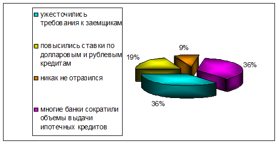 § Кризис привел к росту стоимости заимствований на международных рынках капитала, а также к дефициту финансирования. Отреагировали следующим образом: снизили максимальные суммы кредитов, ужесточили подход к таким программам, как "кредит на любые цели" и "кредит с минимальным первоначальным взносом".