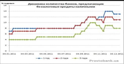 Количество банков, предлагающих беззалоговые кредиты наличными, в 2011 году удвоилось: с семи учреждений, выдававших кредиты в январе-2011, их число выросло до 14-ти в декабре-2011. Правда, к концу года отдельные банки стали приостанавливать кредитование, но общую тенденцию это изменить не смогло.
