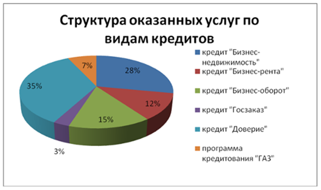 Структура оказанных услуг по видам кредитов представлена на рисунке 3.