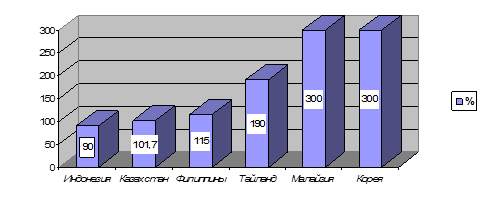 Рисунок 1 - Активы финансового сектора по странам (в % к ВВП)