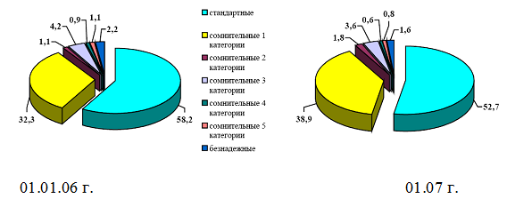 Рисунок 4 – Структура ссудного портфеля по качеству на 01.01.06 и 01.01.07 гг. (%)