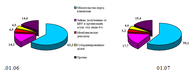 Рисунок 5 – Структура обязательств банковского сектора по состоянию на 01.01.06 и 01.01.07 гг. (%)