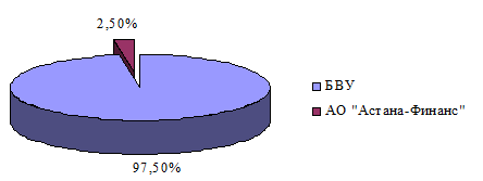 Рисунок 15 – Доля АО "Астана-Финанс" по кредитованию бизнеса среди БВУ на 01.01.2007 г.
