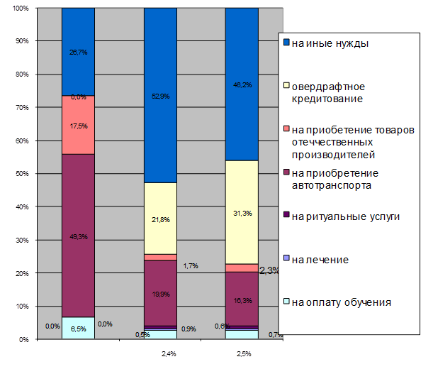 Кредиты на приобретение товаров отечественных производителей, оплату за обучение и на ритуальные услуги пользуются спросом в связи с более низким размером процентных ставок.