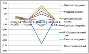 В 2010 году отрицательное значение расчетного собственного капитала связано с уменьшением собственного капитала АО «БТА Банк» и АО «Альянс Банк». Прирост капитала первого уровня составил -169%.