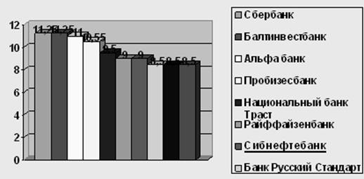 Исследуемый банк занимает 7 место (рис. 1.10) по условиям предоставления депозита (депозитных ставок).