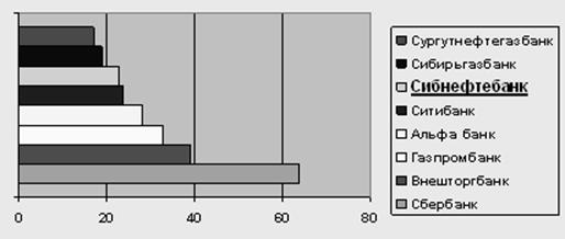 В рейтинге банков на региональном рынке Сибнефтебанк занимает 6 место, см. рис.1.13.