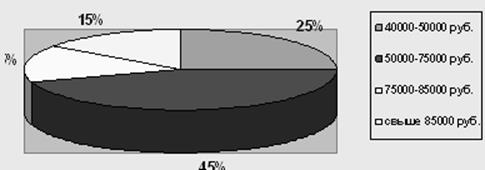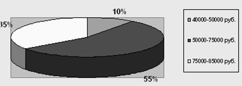 Как видно на рис.3.1, 75% опрошенных считают кредиты помощи молодым семьям необходимыми. Поэтому внедрение таких видов кредитования оправдано. Выяснена также оптимальная сумма кредита, см.рис.3.2.