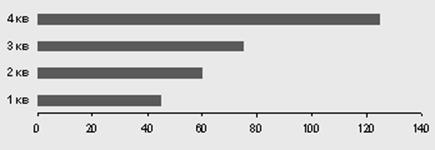 Итак, количество кредитов взято по минимальным основам, но с учетом того, что ежеквартально оно будет немного возрастать (за счет рекламы данного вида кредитования и т.д.), см. рис.3.5.