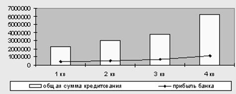 Предполагается, что ставка кредитования в течении года останется неизменной, поэтому мы можем сравнить прогнозируемую прибыль банка и общую сумму кредитования, см.рис.3.6.