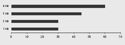 Как показывают расчеты таблицы, средняя сумма предполагаемого кредитования – 75000 (необходимая сумма на обучение согласно опросам потенциальных клиентов). Предположительно в год кредит будет предоставляться 165 студентам, с постепенным увеличение поквартально, см.рис.3.7.