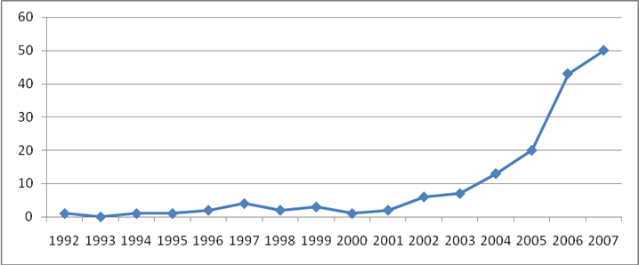 Анализ тенденции отзыва банковских лицензий в период с 1992 по 2007 год отражен на рисунке 1.