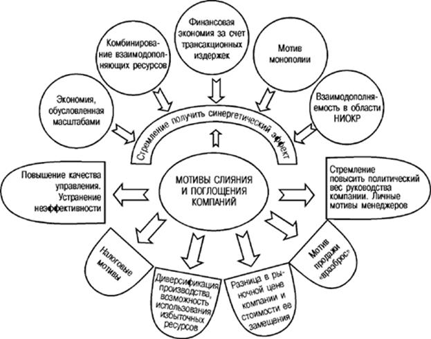 Теория и практика современного корпоративного менеджмента выдвигает достаточно много причин для объяснения слияний и поглощений компаний. Выявление мотивов слияний очень важно, именно они отражают причины, по которым две или несколько компаний, объединившись, стоят дороже, чем по отдельности. А рост капитализированной стоимости объединенной компании является целью большинства слияний и поглощений.