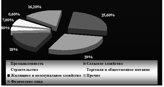 Рисунок 3.4 - Состав и структура кредитов банков Республики Беларусь по видам деятельности на 01.07.2010г., %