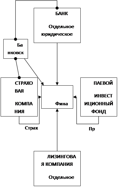 Финансовый супермаркет − это модель клиенто-ориентированного бизнеса, представляющая собой единый интегрированный канал доступа потребителей к финансовым услугам (рис. 1). Финансовый супермаркет – это территориальное и маркетинговое объединение компаний, предлагающих широкий спектр финансовых услуг (банковских, страховых, лизинговых, инвестиционных и т.д.). Анализ зарубежного и российского опыта предоставления розничных финансовых услуг показывает, что наиболее экономически оправдано создание финансового супермаркета на базе банка и страховой компании.